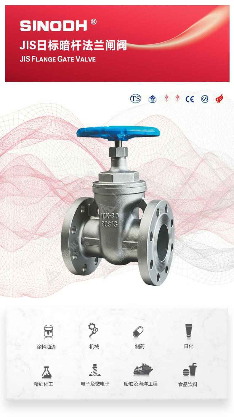 JIS日标暗杆法兰闸阀,为沈阳远航重型机械有限公司自主研发生产。本产品设计制造标准符合JISB2071标准,该产品是一种最常见的启闭阀,利用闸板的上下工作来接通(全开)和截断(全关)管道中的流体介质。