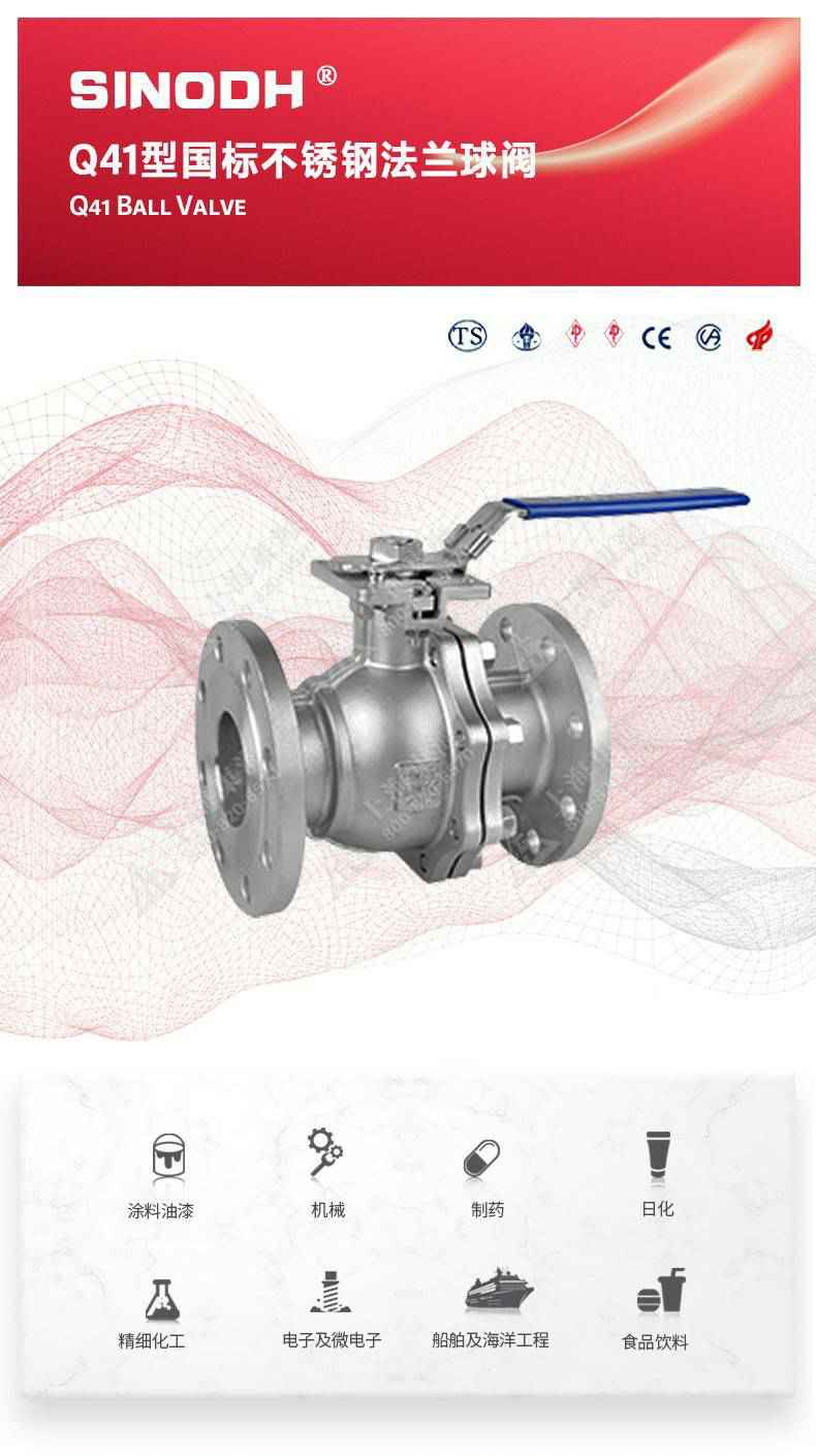 Q41型国标不锈钢法兰球阀,为沈阳远航重型机械有限公司自主研发生产。本产品设计制造标准符合GB/T12237、GB/T 1 2224标准该产品的球体在介质压力作用下,球体能产生-定的位移并紧压在出口端的密封面上,保证出口端密封。适用于水、溶剂、酸和天然气等-般工业介质,也适用于工况恶劣的介质,如氧气、过氧化氢、甲烷和乙烯等介质。